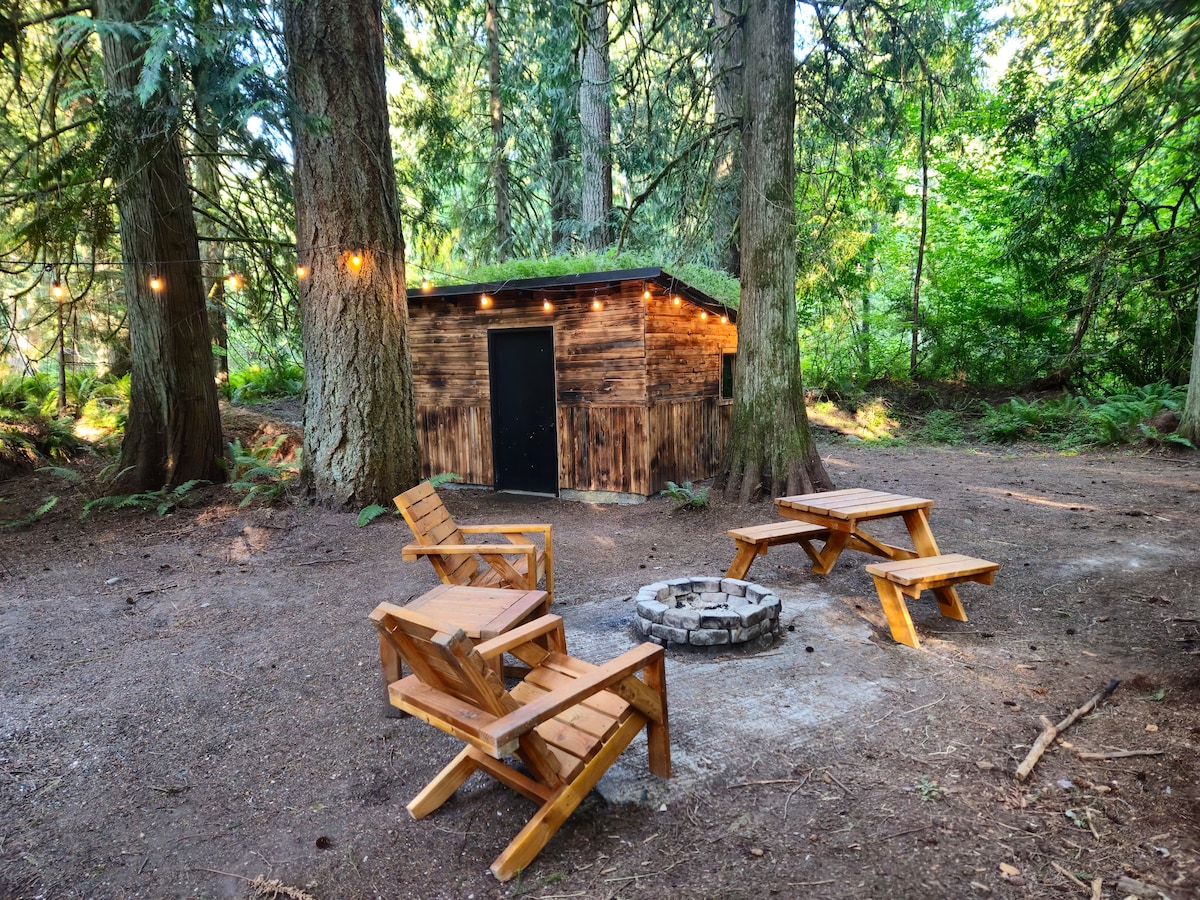 Welcome to our cozy cabins nestled in the foothills of Mt. Rainier. While here you have your choice of places to visit. Hiking, snowshoeing, cross county skiing, horseback riding, sightseeing all minutes away. After a day of fun enjoy the evening around a campfire relaxing. Unplug from life for a moment to enjoy your complimentary morning coffee out on the deck listening to the birds. Note: Your experience with us is in 3 separate cabins. kitchen, bathroom, bedroom all steps from each other.