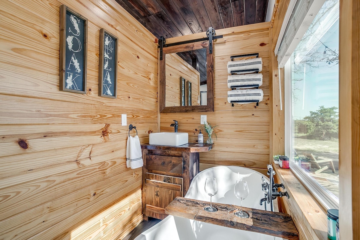 Enjoy this new Tiny home on a private 10 acre parcel just minutes from I-20. Strawn TX is an hour from Ft. Worth, less than 2 hrs. from Dallas. This setting embodies the charm of west Texas: picturesque rural landscape, rolling hills, open fields, and patches of trees. Experience the quintessential rural Texan countryside, with its wide-open spaces and a sense of tranquility. Roast marshmallows over your firepit, enjoy beautiful sunsets, and relax in the quiet beauty.