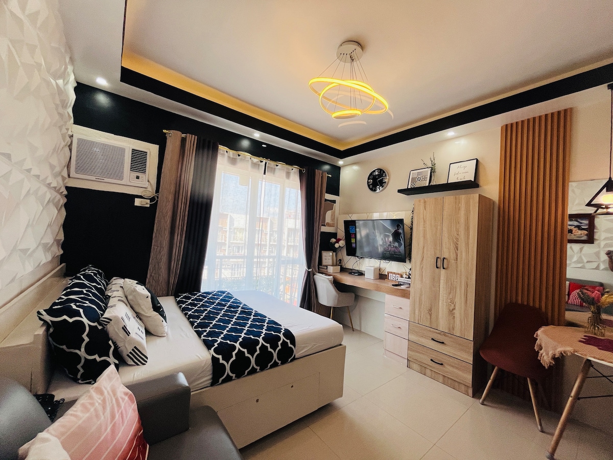 Relax in this entirely cozy, modern and vibrant 1BR condo unit that is conveniently located in ONE MANCHESTER PLACE, Mactan Newtown, Lapu-lapu City. Where it is close to 5 star resorts, restaurants, coffee shops, and supermarket. - 10-15 min drive away from Mactan Airport -Smart Lock Access - 50 Mbps WIFI - Free Netflix - Fully Equipped kitchen (IMPORTANT NOTICE: Kindly review the property descriptions below before making your reservation)