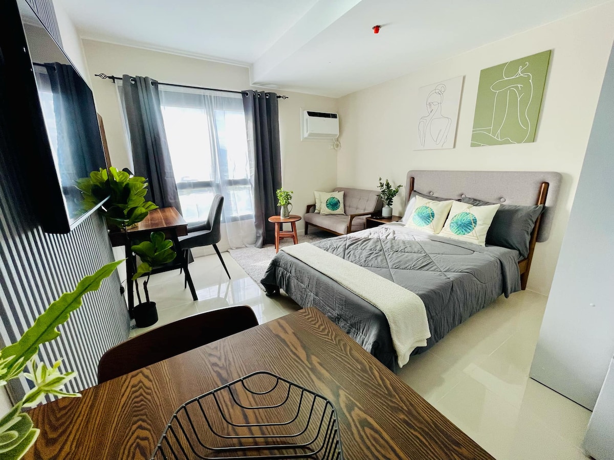 A cozy & thoughtfully furnished studio condo near Cebu’s major commercial & business hubs - IT Park & Ayala Center! So whether you’re visiting Cebu for business or leisure, you’re sure to be accessible & within reach to your destinations. Feel right at home and be greeted with the wonderful views of the sunrise, the hills and fairways. And with Fiber internet, always stay connected wether for work or Netflix. We’d love for you to experience Cebu and to feel right just at home.