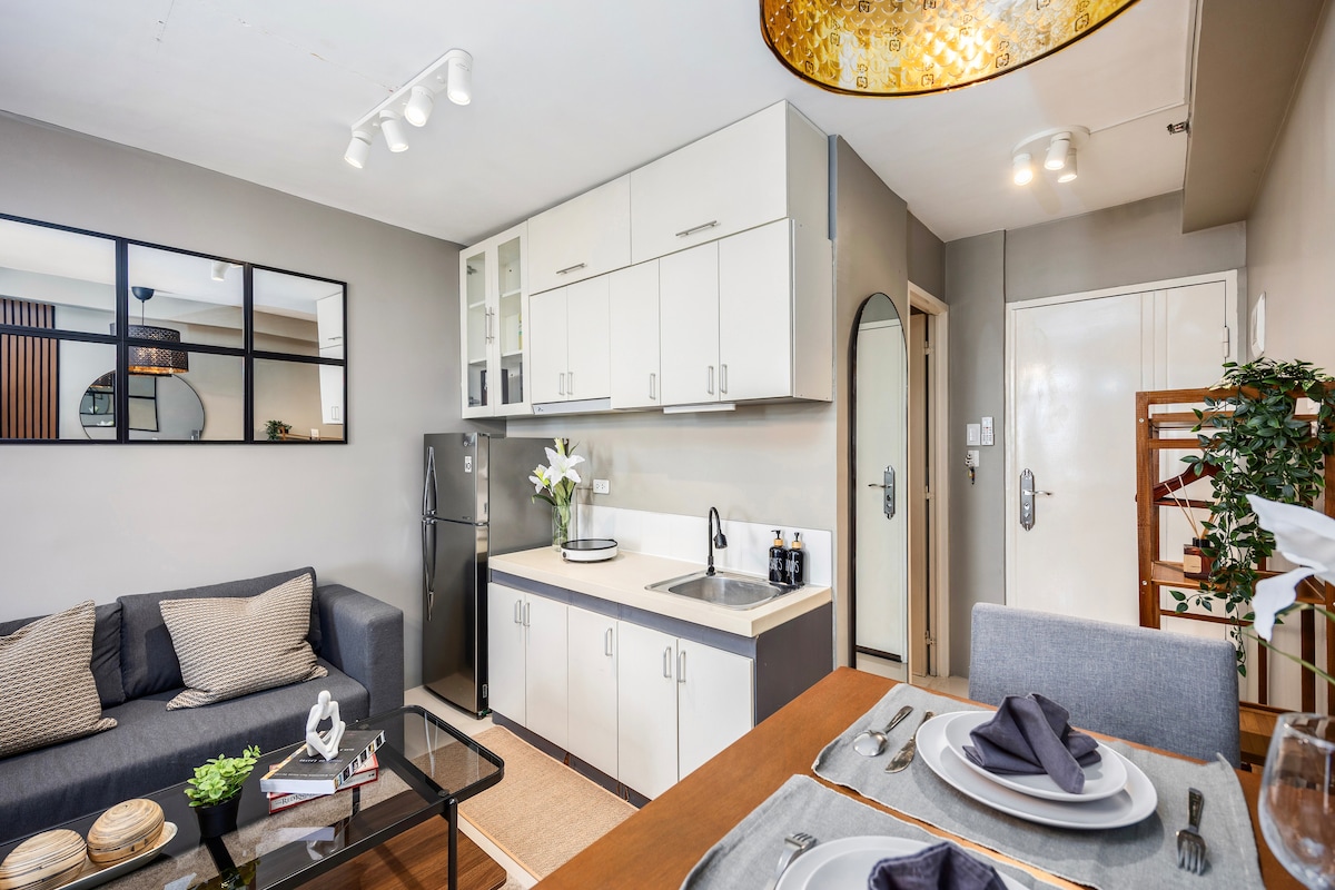 Kick back and relax in this calm, stylish studio unit near Mactan-Cebu International Airport! Inclusions: - Free access to the Pool and Gym - Towels and toiletries - Complimentary Coffee - Hairdryer - Clothes iron - Extra bed linens (upon request) - Wi-Fi About our space: - Pet-friendly - 32 sqm with a balcony facing the pool - Queen-sized bed with 2 bedside outlets - Work desk - Hot and cold shower - Dining area - Smart TV with Netflix - Wardrobe - Kitchen - Washing Machine
