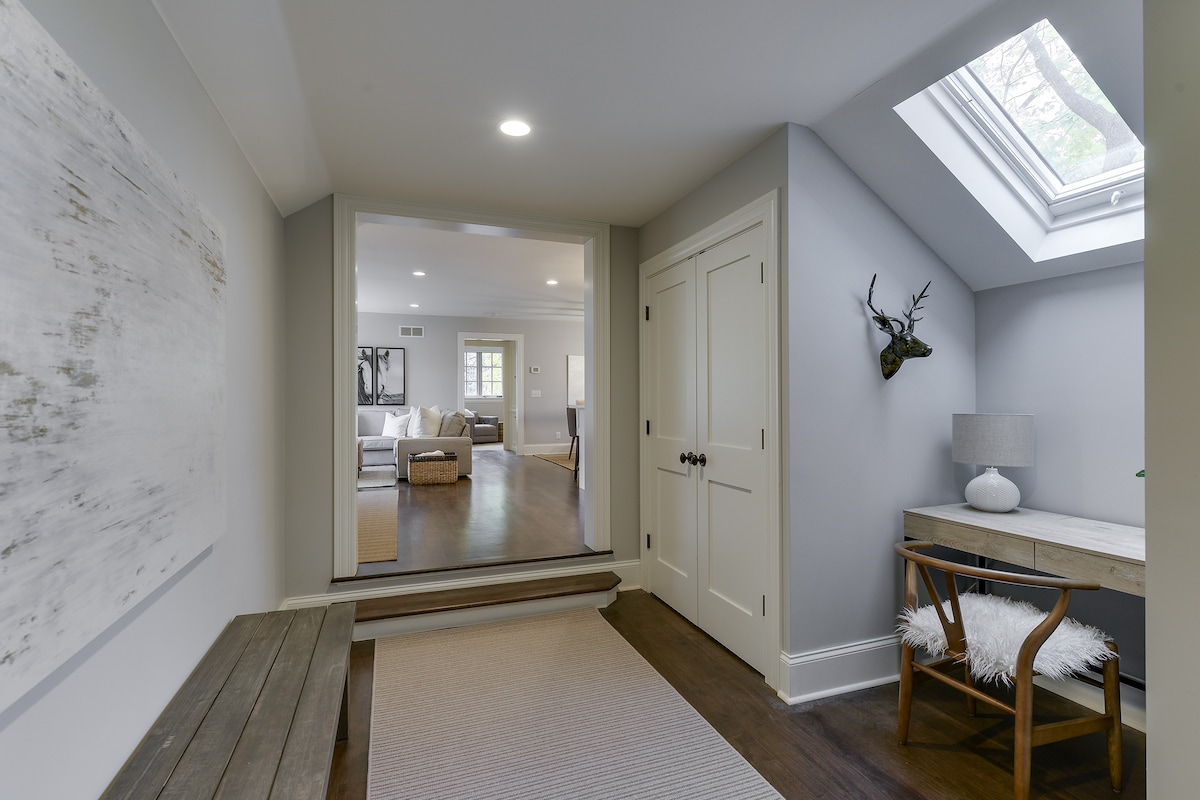 Designer owned carriage house just completed and only 1 block to Lake Harriet. Walk to restaurants, Lake Harriet, or take a short Uber/Lyft ride to Downtown. This carriage house is connected to a stately home on one of the largest lots in the East Harriet neighborhood. Private bedroom w/ King bed. Day bed with trundle in living room. Separate Heat/A/C for unit. Washer/Dryer in unit. Stylish decor and lovely light-filled spaces. Beautiful and well-stocked kitchen. On site parking spot.