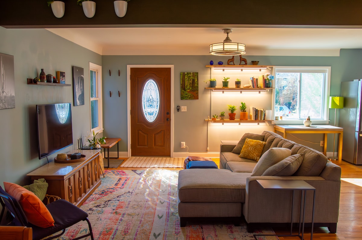Welcome to your cozy getaway on the private first floor of a stylish home—located in the heart of a nice residential neighborhood within the city. The space comfortably sleeps up to 6 guests and is perfect for a relaxing respite, a girls’/guys’ trip, a family escape, concerts, golf, etc. Backyard grill with outdoor dining, high-speed Wi-Fi, and full kitchen. Your two hosts live on-site—one in the studio at the back of the yard, the other in the basement. Each space has its own private entrance.