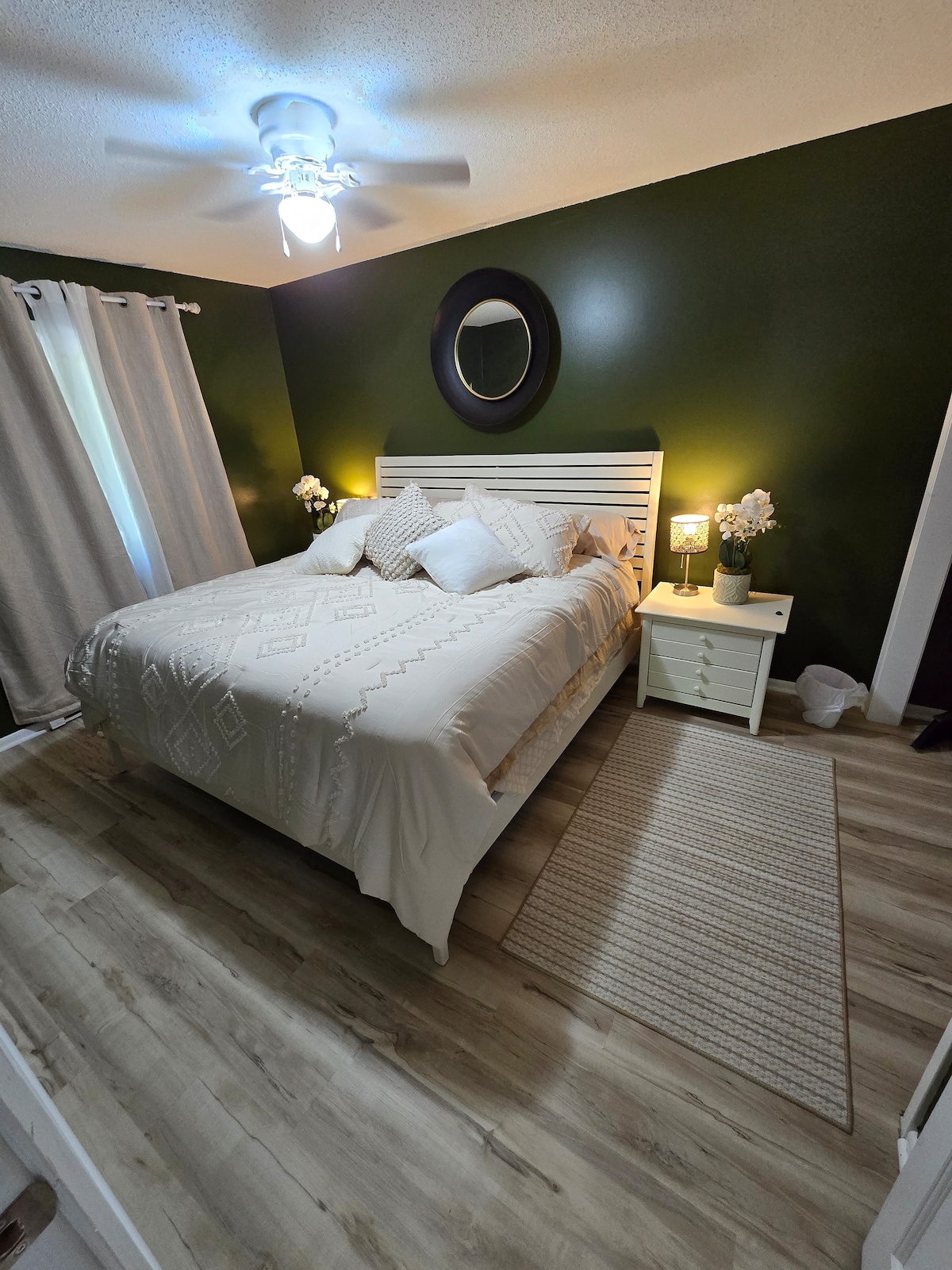 Discover a newly renovated unique space with luxury touches throughout. From the moment you enter you will find relaxing touches throughout including a 65 inch TV, luxury linens, full sized leather couch, a lit full body mirror and a bathroom that includes luxury soap, shampoo, conditioner, hairdryer and all you could dream of. If you are looking for a nice getaway, a night in town or just a clean luxury place to stay, we got you covered !