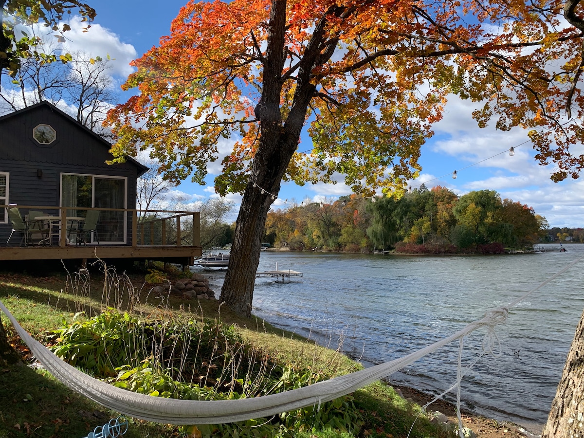This cabin is ideal for a getaway year round. Set in a peaceful, wooded, quiet bay on Horseshoe Lake on the Chain of Lakes. This cozy, inviting cabin has a gorgeous shoreline with a sandy beach, stunning sunset views, a dock that is perfect for fishing (or jumping in!), a raft to swim to, hammocks to lounge in, and a large bonfire area to end your day. Endless outdoor activities year round! This cabin has everything you need for a memorable, relaxing vacation! No detail has been overlooked.