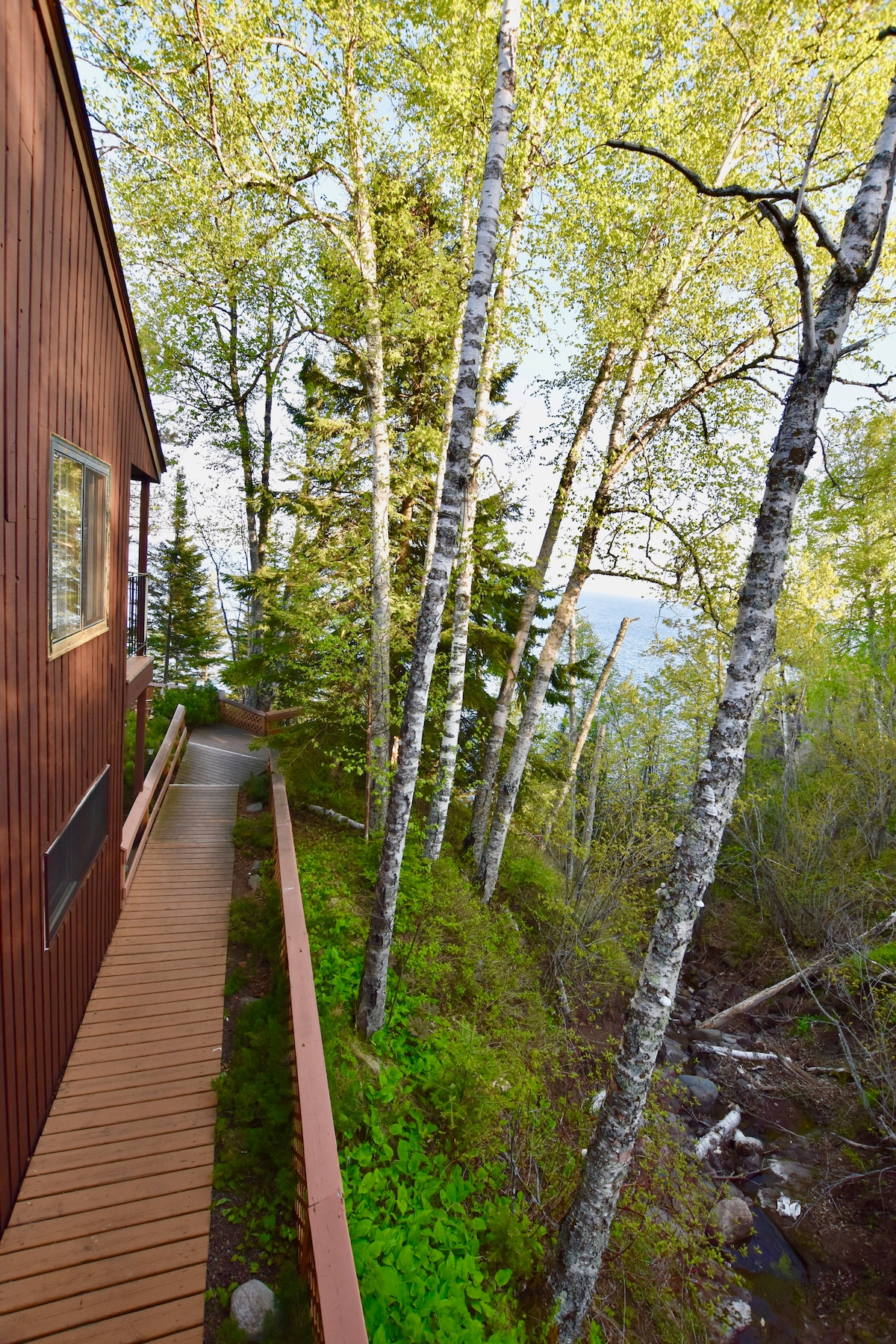 Sunny first-floor condo situated high atop rocky cliffs overlooking Lake Superior—just steps to the water's edge. Private end unit offers windows on 2 sides w/ stunning views & a stereo-like symphony of sounds of the lake & adjacent creek. A carefully curated collection of antique, vintage & modern furnishings & collectibles meld w/ modern conveniences. Relax on the private patio or along the shore. Easy access to hiking, biking & ski trails, great restaurants, Lutsen Mountains, a winery & more.