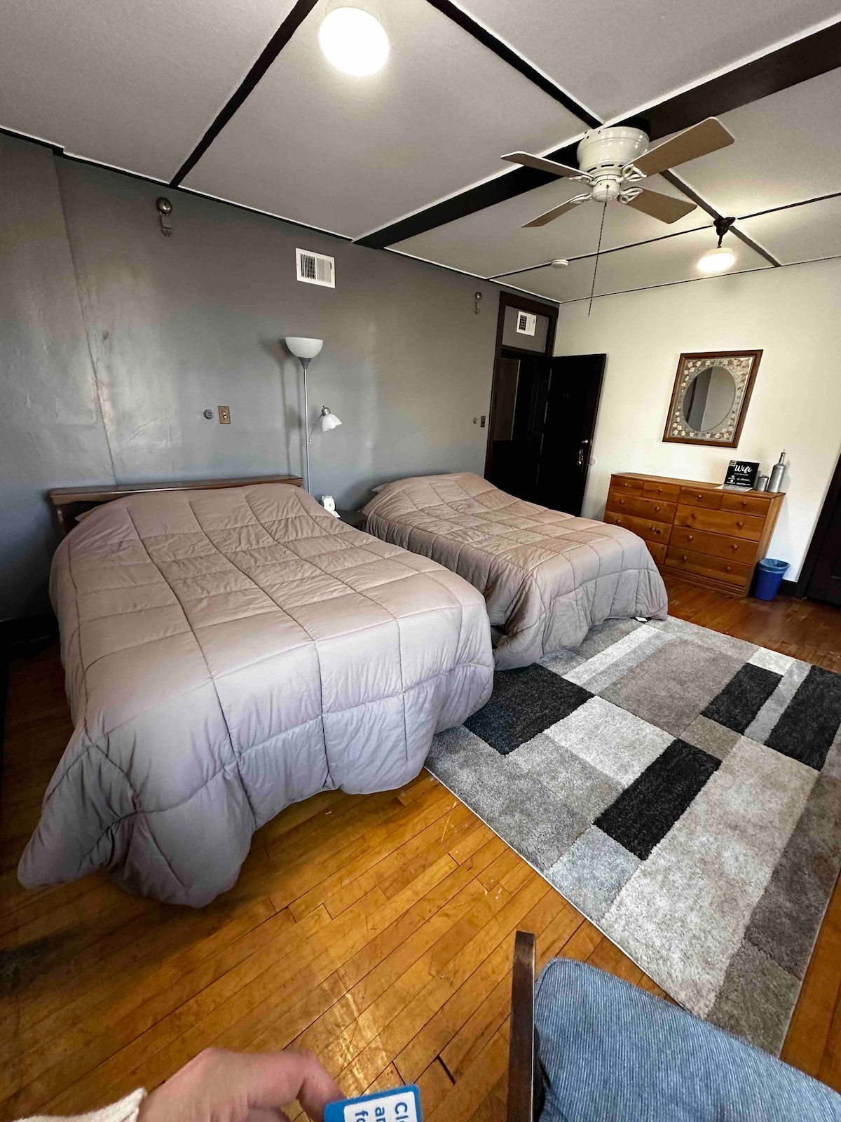 This is a private room for up to two people, in a Lodging House. The room has a Queen bed. There may be a couple of other guests staying in the other 2 rooms on this floor so we ask everyone to use common courtesy as there are some shared spaces. This large old brick and mortar building used to be a first National Bank. Now it’s a quaintly decorated lodging establishment, great for a weekend away or traveling for work. I have been hosting on Airbnb for a few years and this is my fave.
