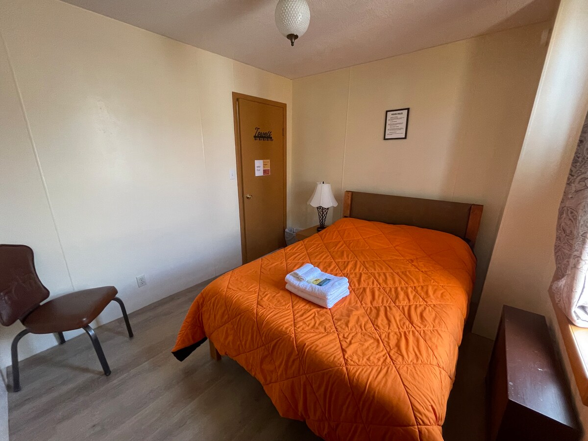 Room #5 in our Hostel features a comfy queen bed, in- floor heat, and a large window that faces the rear of the Hostel. This is the one (and ONLY) room that allows furry friends (there is a $20 pet fee due upon arrival). A hostel is a budget orientated, sociable accommodation that is shared among individual travelers and groups for short term stays. Mingling & sharing is part of the deal!