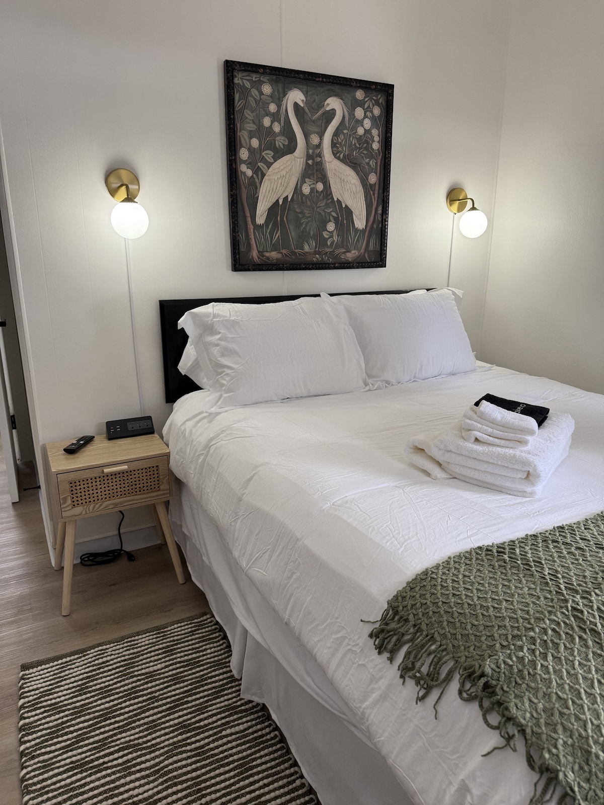 Scandinavian boutique, 6 room, lakeside motel. On site market, liquor store, rooftop bar and boat rentals. Skip the lobby Skip the waiting Skip the elevator and walk right into your private, lakeside room, with front door parking. Personal patio and fire pit Luxury bathroom w/ jacuzzi tub and shower King dreamcloud bed Living room w/ pullout sofa Nespresso French press Tea kettle Toaster, plugin stove top 4 person table 4 restaurants next door Local small town shopping Boundless adventure