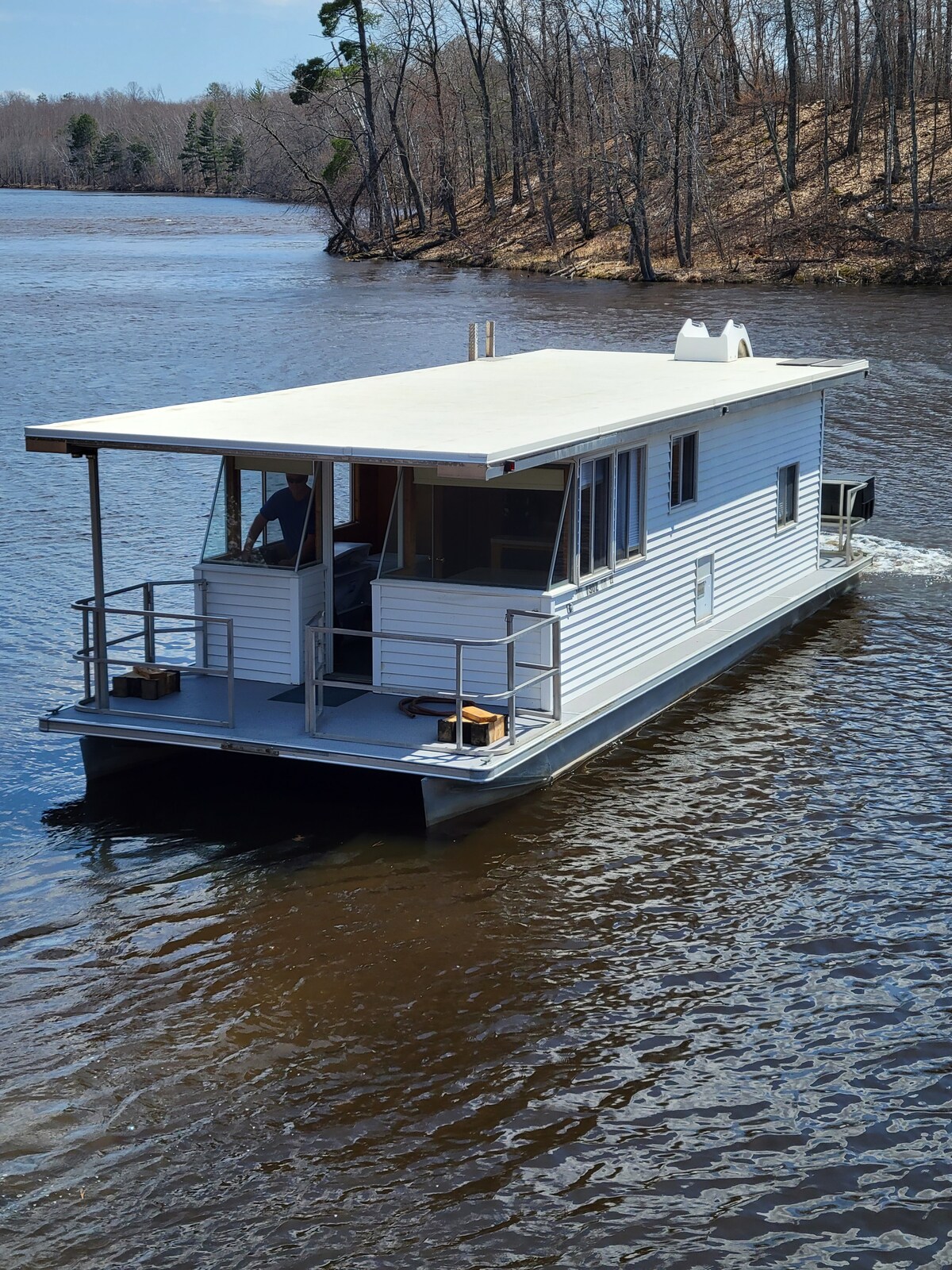 Reconnect with nature at this unforgettable escape. "Miss Guided" is our second houseboat. It has a smaller gathering space than our other houseboat, perfect for a couple/s or small family. This houseboat is on pontoons and is easy to navigate the river. You have 10+ miles of river to explore. As part of the houseboat experience, you can also use the amenities of our resort. Sit by the pool or relax in the hot tub. It is a great way to get away and relax in the heart of Minnesota.