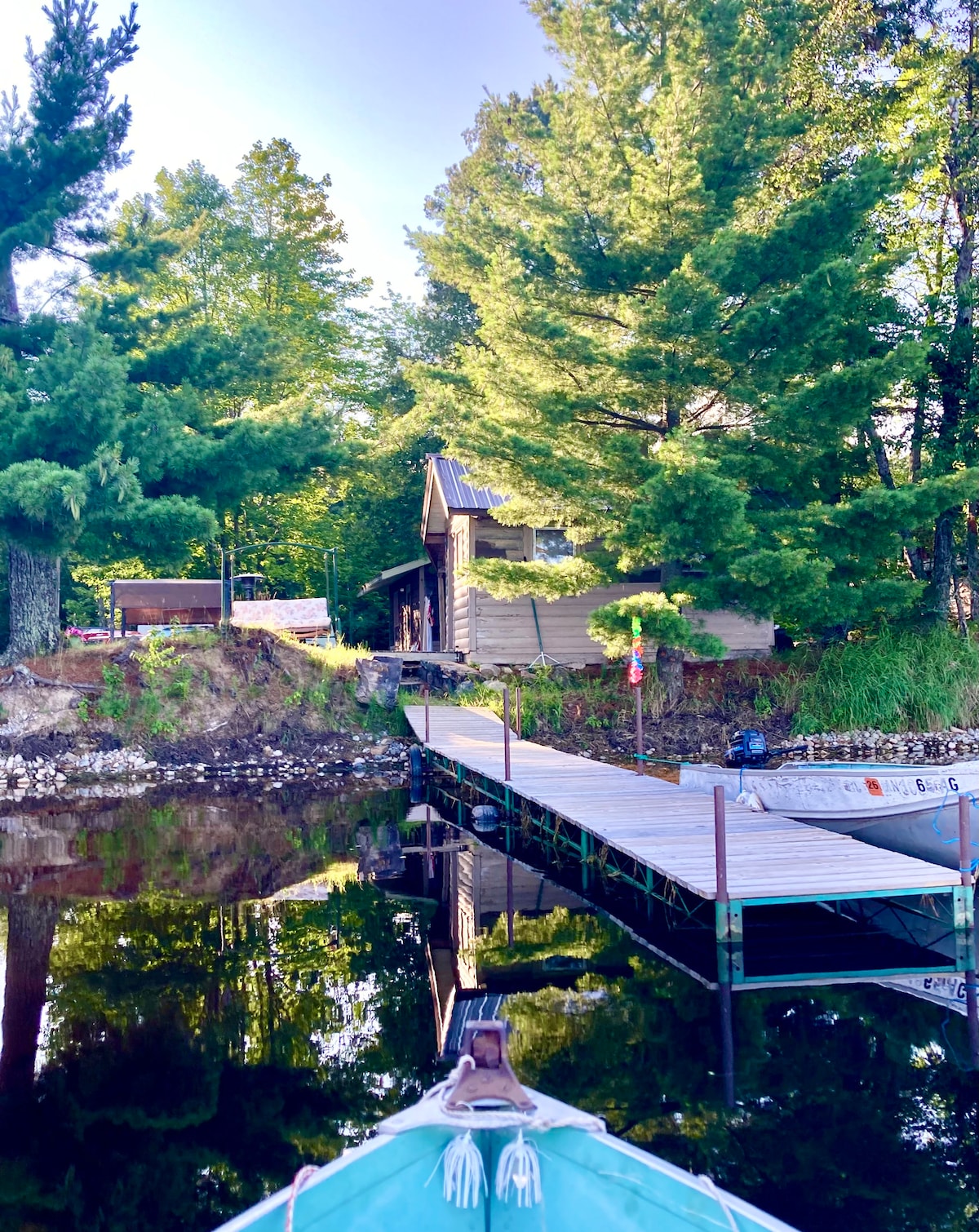 If you are looking for seclusion & privacy, you’ve found it! Listen to the call of the loons or watch the sunset/sunrise from the dock. This space is perfect for campers that want the comfort of a cozy bed, warm shower & air conditioning but are comfortable using an outhouse, as the camper is not hooked up to septic. I include two kayaks, a canoe & a paddle boat to explore the lake! This 5 acre piece of heaven on Shell lake is conveniently located between Detroit Lakes & Park Rapids.