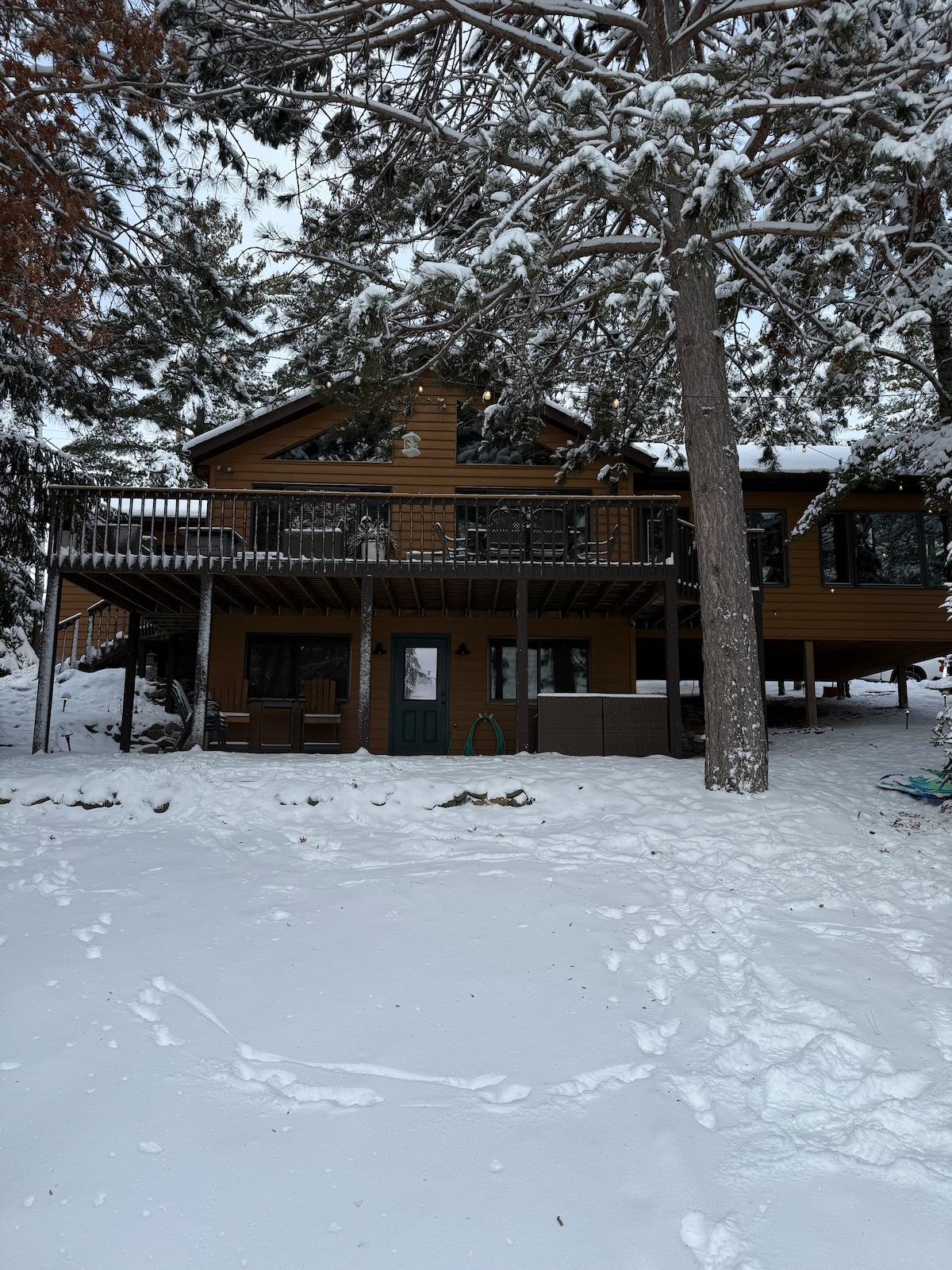 Welcome to our custom-built log cabin on 6 acres in Danbury, WI. This is a 2 bedroom, 1.5 bath cabin with an expansive backyard & stunning patio. It features a stone fireplace, fire pit, lounge sofas, & dining tables. This cabin is private with lush woodlands around it and endless leisures like floating down the river in the summer sun or having a snowball fight as the flakes fall in winter. No matter the season, this cabin is perfect for family & friends to gather to enjoy each other’s company!