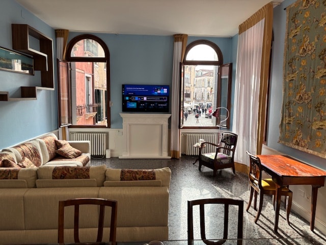 An entire apartment with a Venetian style decor, in a private palazzo from the 1600's, with a STUNNING VIEW. Situated on the 1st floor, the apartment has one large bedroom with a queen sized bed. The bathroom is spacious and equipped with a big shower.The kitchen is fully equipped with a fridge, toaster, kettle and a Nespresso machine. The entrance opens up into a very big living area with a canal view where you can sit and basically touch the water while you are enjoying a glass of wine.