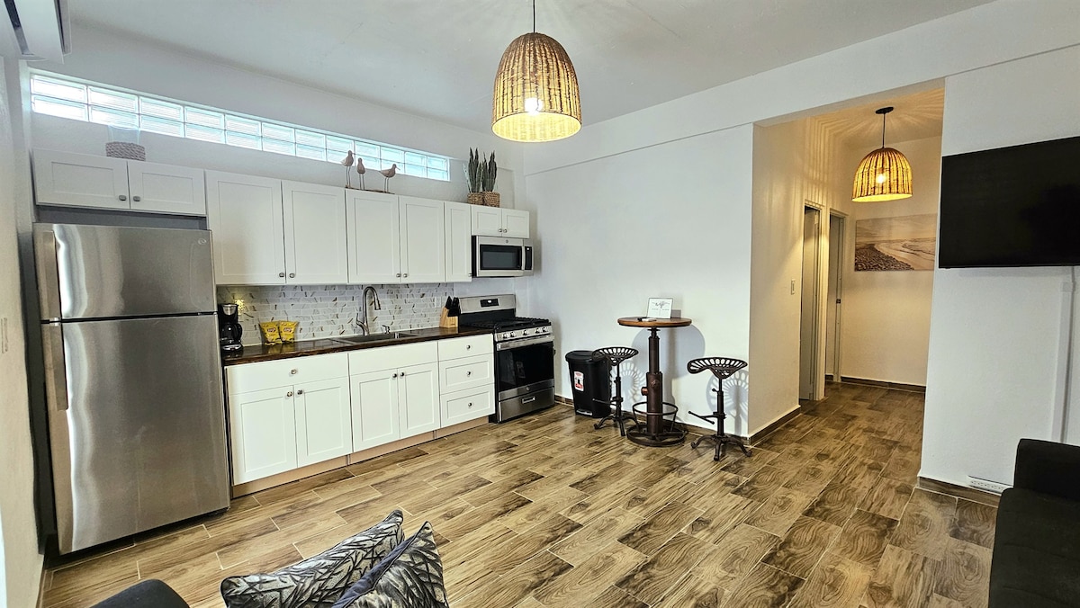 Kick back and relax at our modern, air-conditioned 1-bedroom Coastal Charm. Conveniently located just minutes from oceanfront restaurants, beautiful beaches, shopping, and local bars near Joyuda and Boquerón. Spend your days soaking up the sun at one of many breathtaking beaches, like Playa Buyé and Playa Combate. We also offer the opportunity to enjoy beach hopping and sunset tours on our 28 foot Pontoon Funship boat with waterslide. Contact us for more details—we’d love to host you!