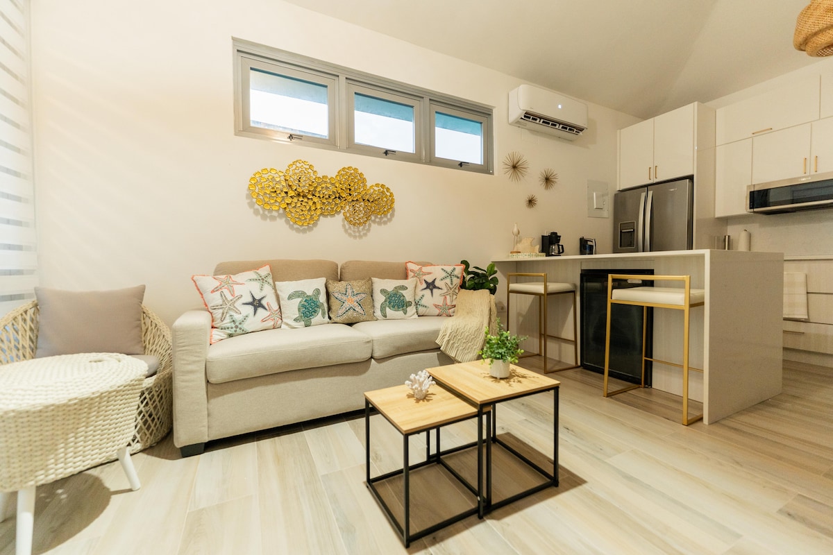 Kick back and relax at our modern, air-conditioned 1-bedroom Coastal Charm. Conveniently located just minutes from oceanfront restaurants, beautiful beaches, shopping, and local bars near Joyuda and Boquerón. Spend your days soaking up the sun at one of many breathtaking beaches, like Playa Buyé and Playa Combate. We also offer the opportunity to enjoy beach hopping and sunset tours on our 28 foot Pontoon Funship boat with waterslide. Contact us for more details—we’d love to host you!