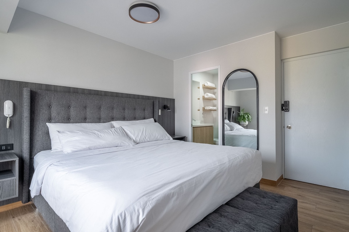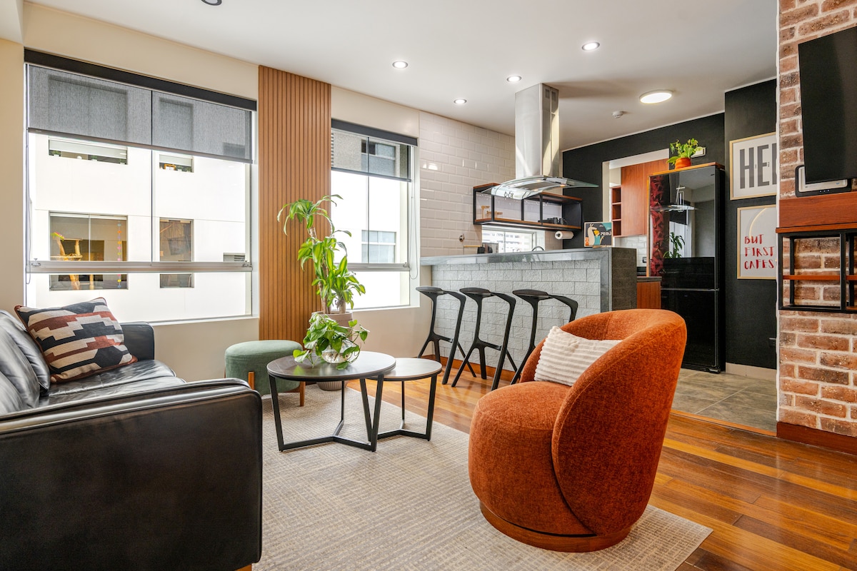 Top-tier location in the safest, most walkable part of Miraflores. Just 2.5 blocks from the Malecón and surrounded by top restaurants, cafés, and shops. Interior-facing unit means a quiet stay, away from noisy streets. Stylishly designed with a king bed, sofa bed, smart TVs, 1.5 baths, full kitchen, washer/dryer, gated parking, and workspace. Beautifully decorated and fully equipped — everything you need for a perfect stay.