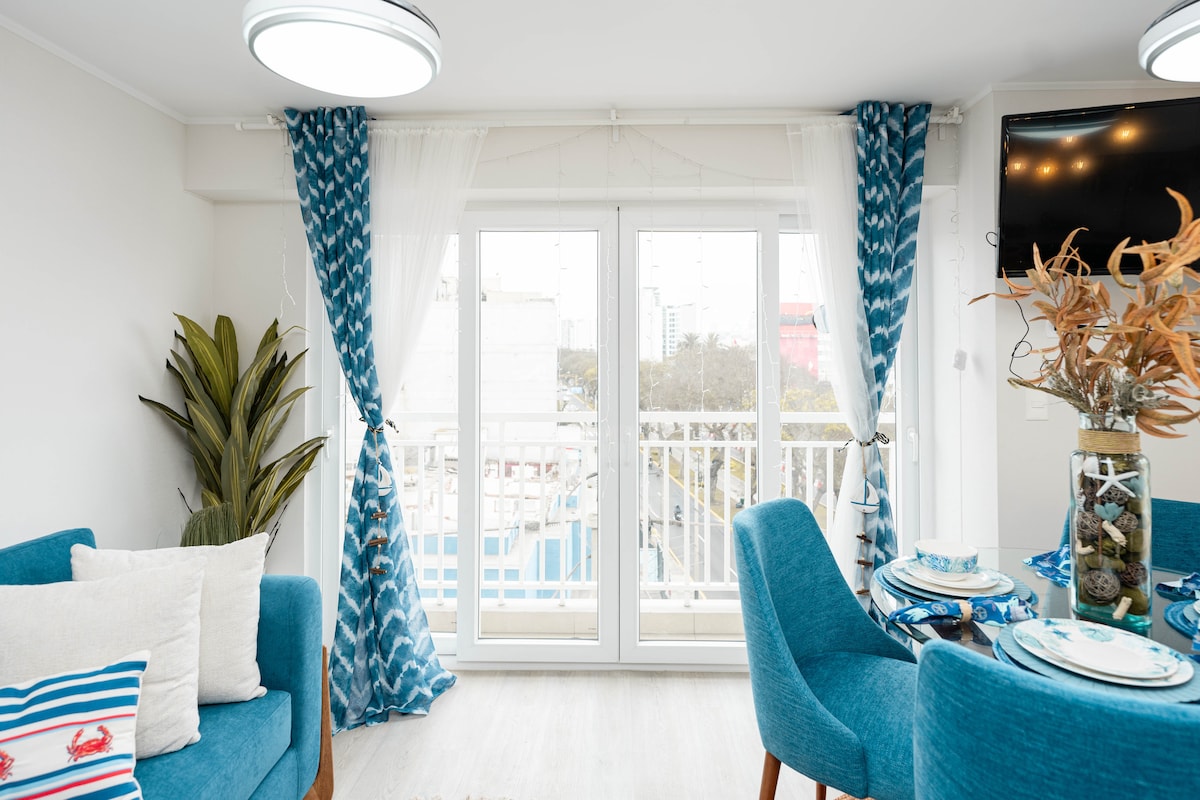 米拉弗洛雷斯Boho-Chic公寓,带露台和海景