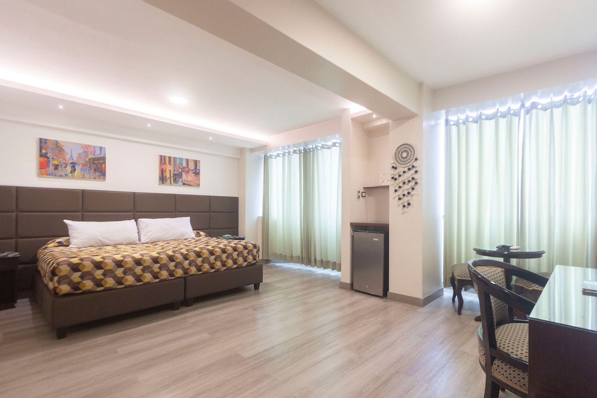 King-Executive Room in a hotel in Miraflores - Av. Angamos Oeste, executive room has a king bed, a 53" flat-screen TV, cable channels and free Wi-Fi. This room has air conditioning, a private bathroom with a jacuzzi and free toiletries plus a hair dryer. It has a minibar, a desk area, a safe, a dining table, wake-up service and a telephone. It also includes a free buffet breakfast in the hotel dining room.