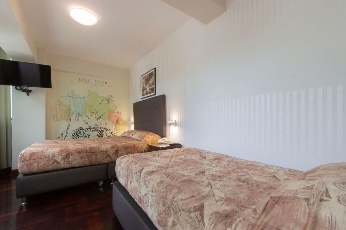 Uno de los mejores hoteles para turistas con excelentes habitaciones modernas y privadas muy cerca del centro histórico y turístico de Lima con todas las comodidades y a poca distancia a pie. Hotel de velocidad wifi de 200 MB con excelente y nueva fibra óptica. Caminando a pocos minutos conocerás Plaza de Armas de Lima, Plaza San Martín, Iglesias y excelente cocina peruana de fácil acceso a diferentes atracciones turísticas del centro de la ciudad. Desayuno incluido todos los días de tu estadía.
