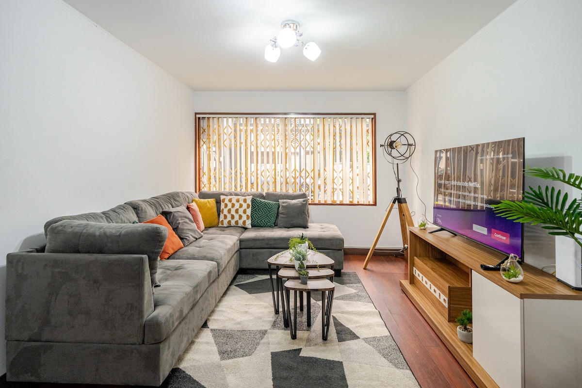 Recently renovated in late 2016, more than 4.300 sqf (+ 400 m2) house available to guests. It has 5 spacious bedrooms, 4 with its own bathrooms each. Here you can enjoy the cozy living room with chimeney and a fresh inner yard with BBQ, all the spaces of the house are very spacious and comfortable to enjoy with family and friends. The house is 2 blocks away of the famous Kennedy Park, Lima's tourist center where there are many restaurants and a great nightlife.