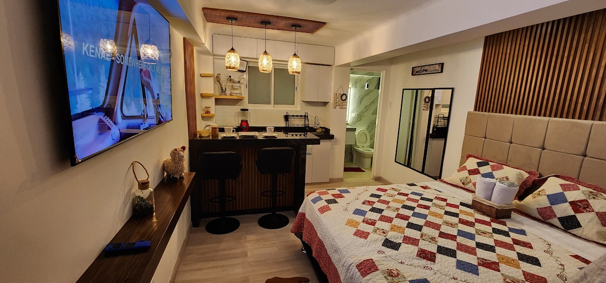 Disfruta de la sencillez de este alojamiento tranquilo, bello y céntrico. El departamento cuenta con todo lo necesario en cocina y dormitorio. Aunque es importante mencionar que el departamento se encuentra en el piso 3 y no está en funcionamiento el ascensor. La cama es tamaño Queen y la televisión es de 55 pulgadas 👍🙂. También Wi-fi rápido.