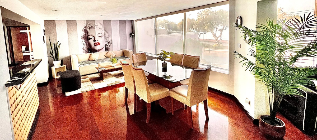Designer Apartment is a big, spacious apt with 80 m2, 2 bedrooms, 2 full baths located in the center of Miraflores. We offer a relaxed and friendly atmosphere in the safest and most exclusive area of Lima, with excellent location, a few steps away from casinos, restaurants, shops, cafes and bars. The apt is fully remodeled with luxury finishes, warm lighting and 24/7 security. The apt has beautiful city views, anti-noise windows, fast wifi, and smart TV. We are happy to welcome you!
