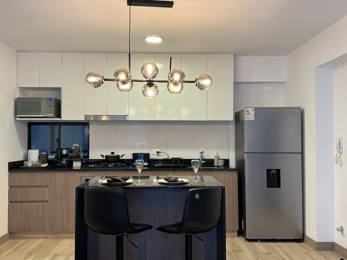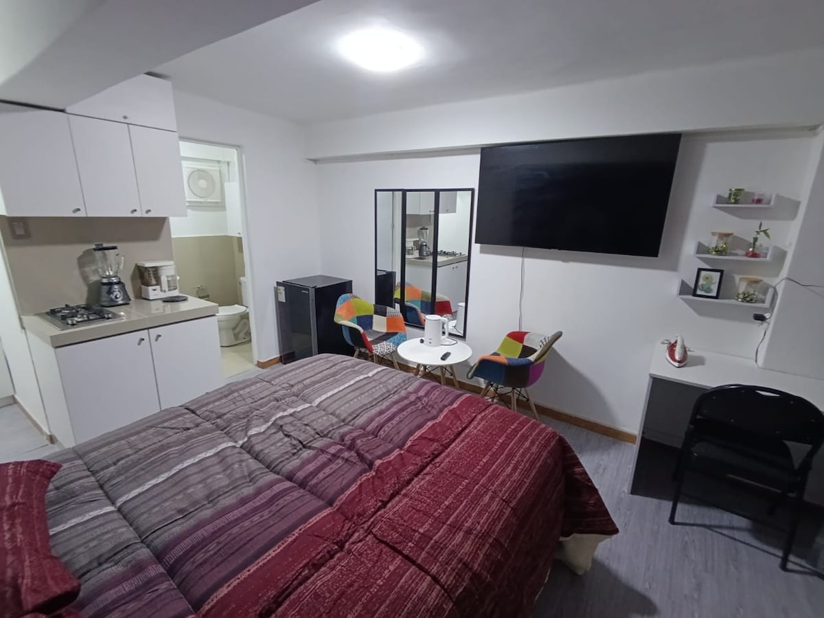 🛏 Loft Distribution: • Master Bedroom: Relax in a comfortable and spacious Queen bed, we have a closet, TV. Perfect for two people🧍🏻🧍🏻. • Cozy Living Room: A perfect space to disconnect. • Fully Equipped Kitchen: Prepare your meals with ease, it has the necessary appliances. • Full Bathroom: Bathroom equipped with amenities. 📸 Discover the beauty on our ig: @vibrant.homesperu