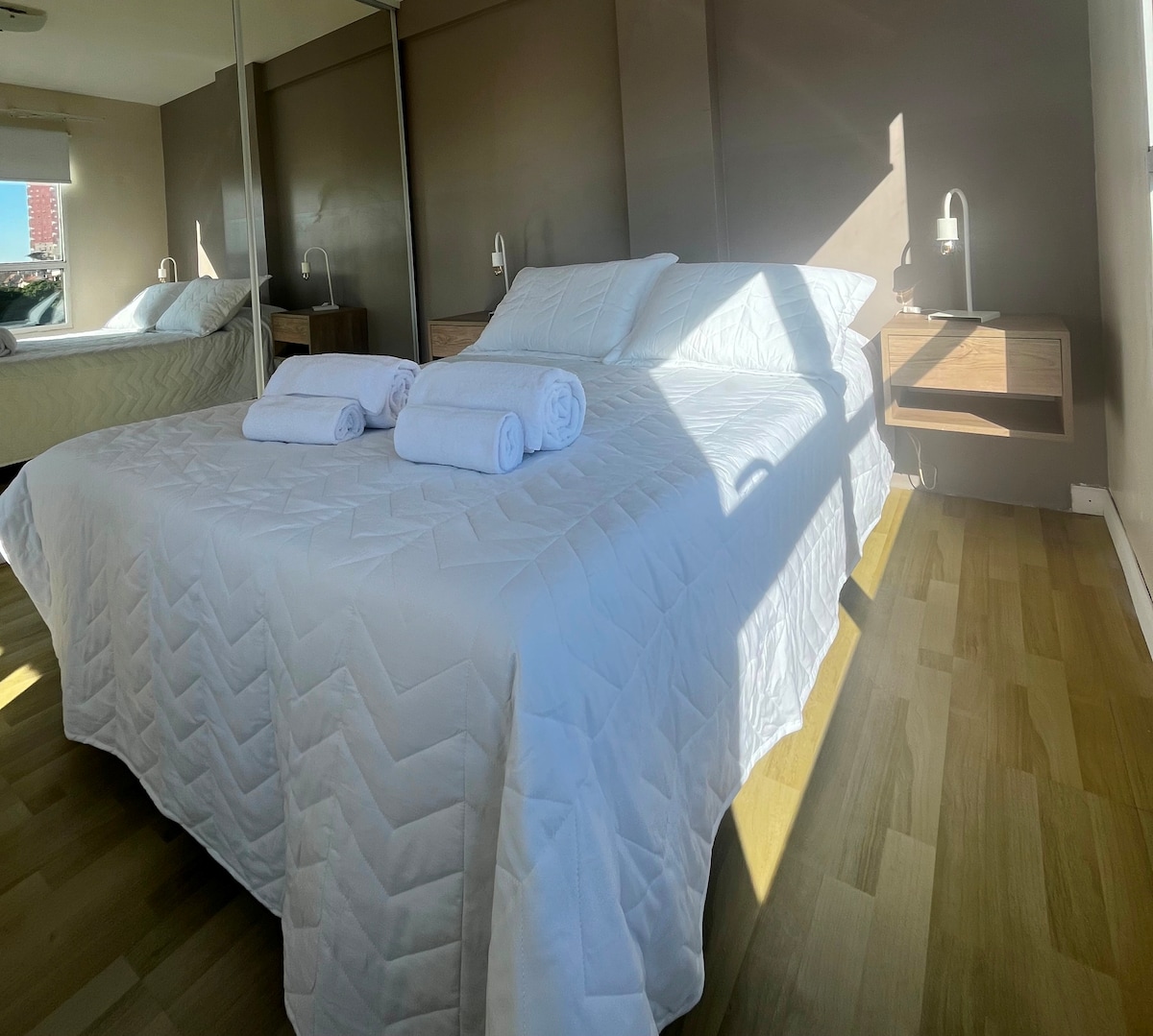 En la mejor zona de Playa Grande, a 300 m. del mar. Dentro de la zona comercial de Alem, lo que te ofrece muy buenas propuestas gastronómicas, y la tranquilidad y belleza del barrio. Este departamento está nuevo e impecable. Totalmente equipado para dos personas, pudiendo sumar una cama adicional en el living por su amplitud. Tiene dos buenos balcones, y en uno de ellos, parrilla a gas. Con cochera propia, sala de entrenamiento y laundry. El depto tiene wifi, 2 tv y losa radiante. Una bomba.