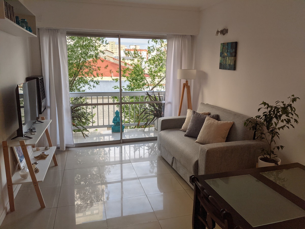 Cómodo 2 ambientes en zona La Perla, a sólo 3 cuadras de la Playa y 5 de la Peatonal de Mar del Plata.... Se hospedan 2 personas cómodamente; consta de 1 habitacion con cama matrimonial, TV con cable y baño completo en suite; Living-comedor con sofá cama, toilette de recepción, balcón saliente y cocina completa. WiFi en todo el apartamento. El departamento cuenta con seguridad las 24 hs y opcional cochera fija y privada. Ideal turismo / viajes de negocios y empresariales (hacemos Fact A)