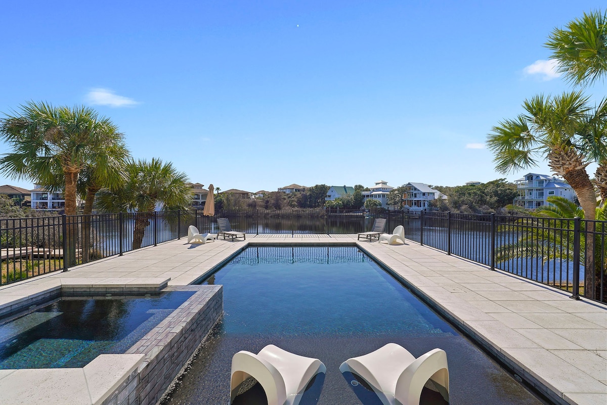 豪华30A小屋,带私人游泳池和高尔夫球车