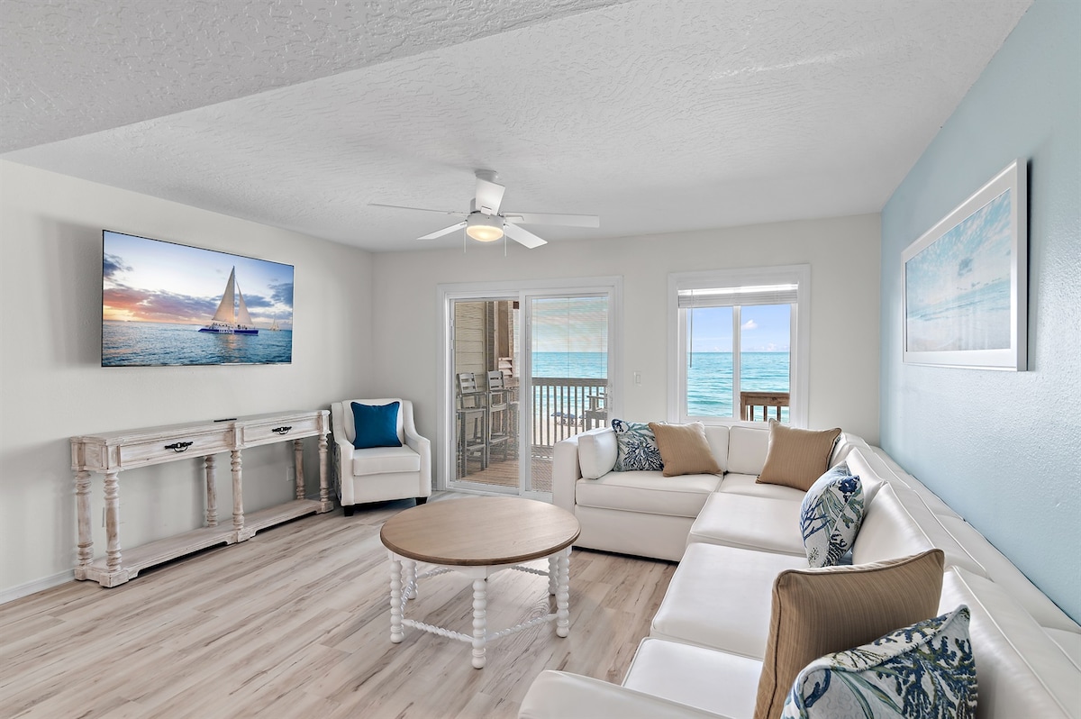 Experience the epitome of coastal living at the "Emerald 'Jule'", a newly renovated 2-bedroom , 2-bathroom with a queen pullout sofa to comfortably accommodate six. Exuding charm and elegance this villa is nestled within the highly sought-after "Destiny Beach Villas" community. This waterfront gem boasts prime real estate, with the tranquil Four Prongs Lake at its rear and pristine sugar-white beaches just steps away from Tom Lee Park beach access and the renowned Crab Trap restaurant.