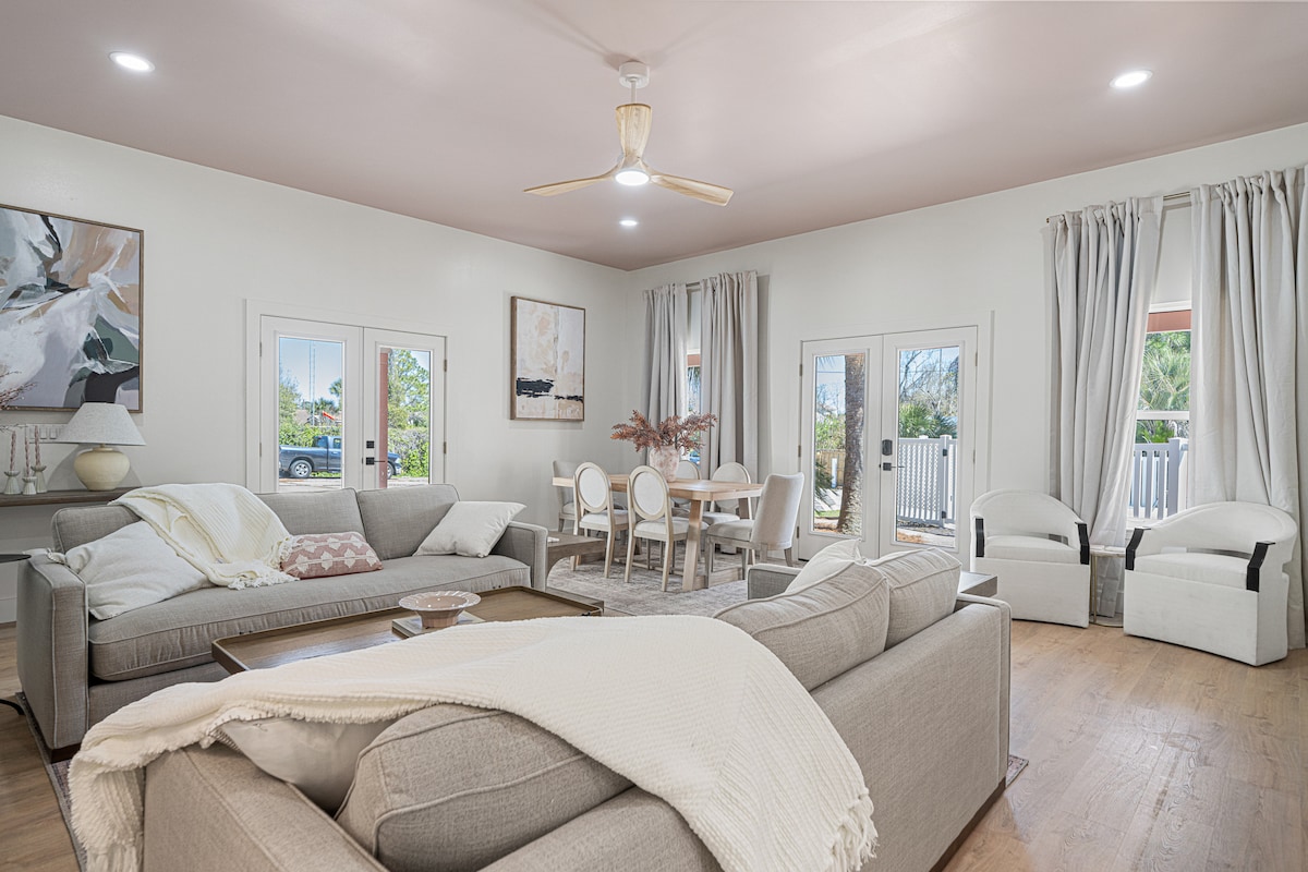 Vacation with us at Gone Coastal, a 4 bd/2 ba beach retreat located between Destin, Santa Rosa & 30A. Our gated community offers private beach access 1/3 mi away. Gone Coastal accommodates 10 guests. Minutes away from a serene coastline, walking/biking trails, and exceptional dining, we furnish a 6 guest golf cart, 10 bikes, 10 beach chairs, a cooler, and 2 umbrellas. Gone Coastal is your home away from home. We cover 100% of your Airbnb guest service fee. We look forward to hosting you!