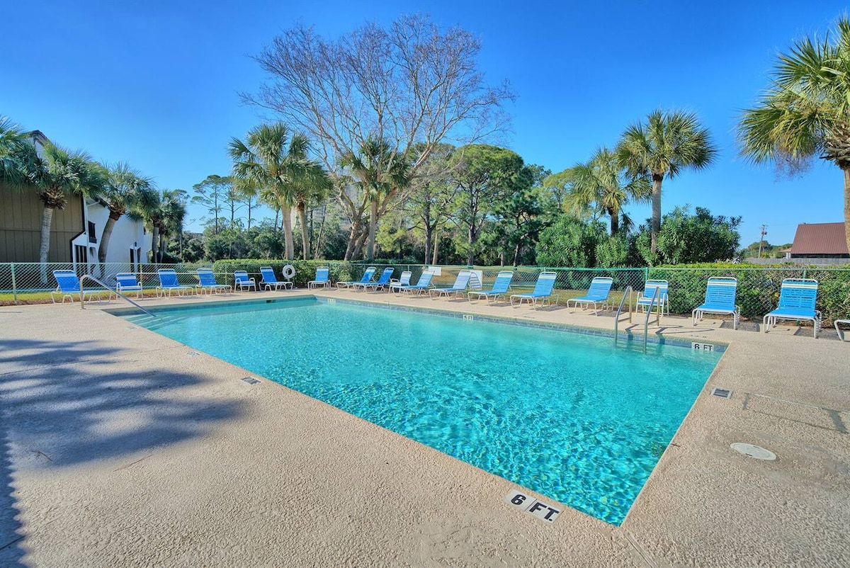 Steps to the beach! Canoe,beach gear &baby gear included! You will have the best vacation you could ever ask for! A vacation on 30A will be forever remembered! Enjoy this updated beach condo with marble & all the luxuries/amenities of home with the beach just minutes away! You will enjoy this perfect condo w/the pool out your back door, lake out your front door and beach just a walk away!Canoe ride to the ocean! This condo will be a place to relax and play. Your whole family will agree!
