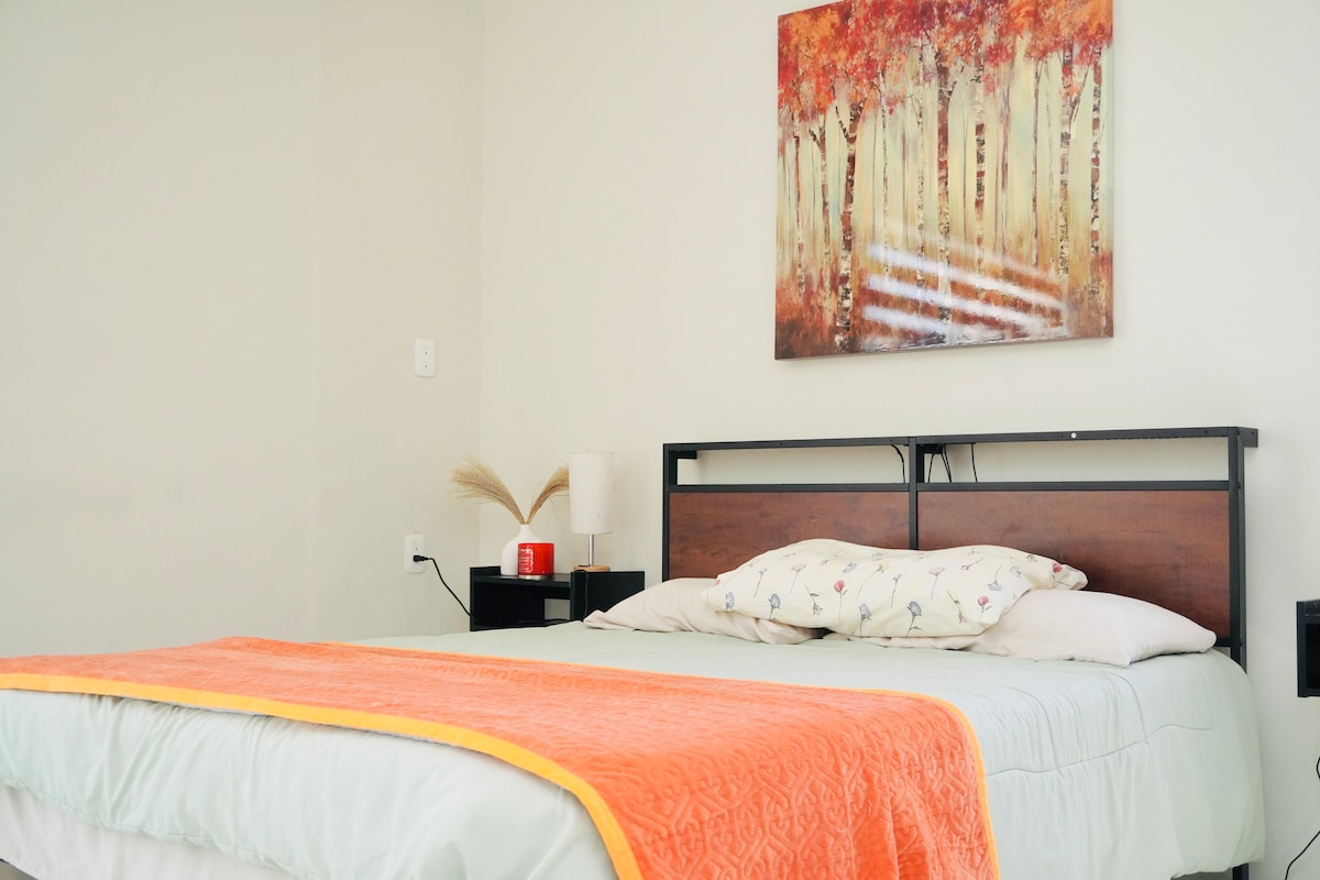 Cómodo mini departamento, con una habitación muy amplia y todo lo necesario para una estancia agradable y placentera, cuenta con una cama matrimonial, un sofá cama, cocina equipada, un baño amplio, aire acondicionado, smart tv con netflix, Internet y una excelente ubicación, muy cercana a las partes más visitadas de nuestra ciudad.