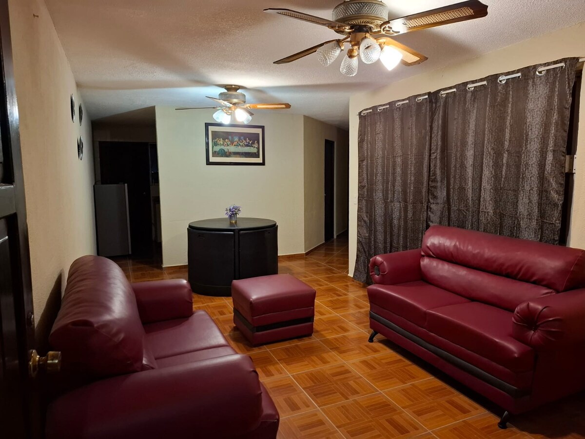 "Nuestro departamento esta a 5 minutos en carro de playa Miramar. Cuenta con cocina equipada con estufa, horno, licuadora, cafetera, utensilios básicos de cocina; Un baño completo con agua caliente. La habitación principal cuenta con MiniSplit, 1 camas matrimonial y una Queen sice y closet amplio. Otra habitación con una cama Quin Size (sin aire acondicionado) . Sala de estar con una pantalla de 40 pulgadas, WIFI, y tv por cable. terraza con asador, mesas y sillas.