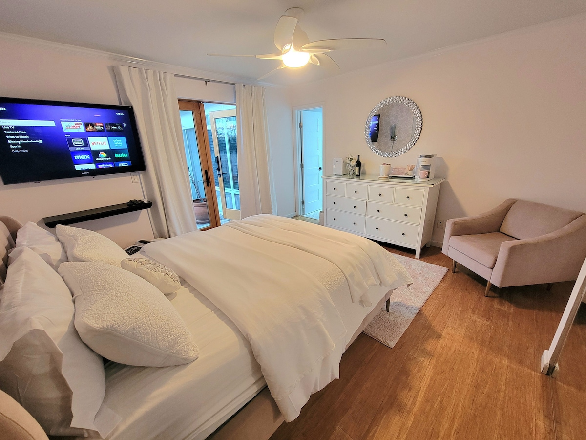 Welcome to the Pacific Blue Retreat – Your Tropical Getaway in the Heart of San Diego! Step into your own slice of paradise — a bright, ocean-inspired guest suite designed for comfort and relaxation. Located right in the center of San Diego — just 15 minutes from the airport, any beach, and close to the stadium. Whether you’re here to explore the city, enjoy the beaches, or simply relax in a peaceful tropical setting, we offer the perfect blend of comfort, convenience, and coastal charm.