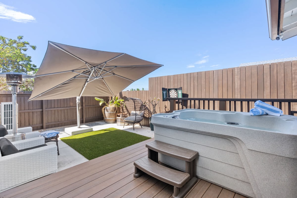 迷人的海滩别墅!2个浴缸和全新户外淋浴间!