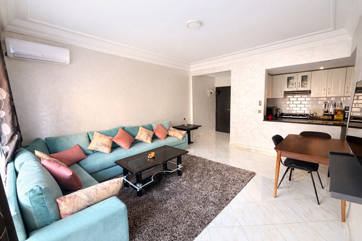 Enjoy a fully renovated apartment in the heart of Gueliz, ideal for up to 3 guests. Modern, comfortable and well designed, it offers a prime central location. Carré Eden is just 8 minutes away, M Avenue can be reached in 20 minutes and the famous Jemaa el-Fna Square in about 25 minutes. Many other attractions, shops, and restaurants are easily accessible nearby. A free secure underground parking space in the building is included for your convenience, making your stay stress-free and comfortable.