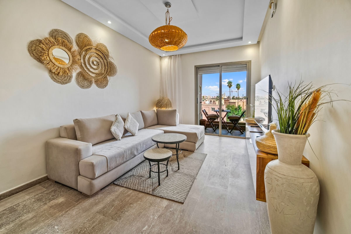 ✨ Appartement Haut Standing avec Terrasse, Parking & Climatisation🥶 – Centre Marrakech ✨ Offrez-vous un séjour premium dans ce cocon moderne, entièrement climatisé, en plein cœur de Marrakech. Ce logement raffiné a été conçu pour allier design contemporain, confort absolu et équipements haut de gamme : terrasse privée, parking sécurisé, literie de qualité hôtelière… Parfaitement situé, il vous garantit une expérience unique, calme et élégante, à deux pas des plus beaux spots de la ville.