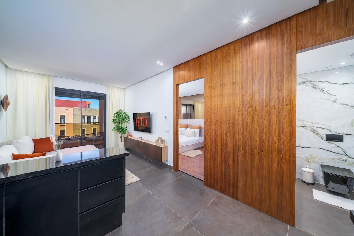 Bienvenue dans cet havre urbain où design contemporain et confort se fondent . Découvrez une chambre spacieuse avec lit king-size et textiles raffinés, salle de bain moderne et soignée, un salon comfy avec une TV, une cuisine entièrement équipée. La terrasse spacieuse, notre pièce maîtresse, offre un havre de paix pour une évasion tranquille. Profitez d'un cadre élégant, où chaque détail a été pensé avec soin. Notre appartement est l'endroit idéal pour une retraite paisible au cœur de la ville.