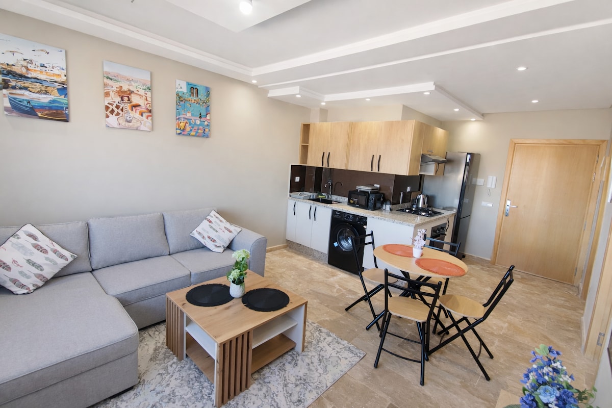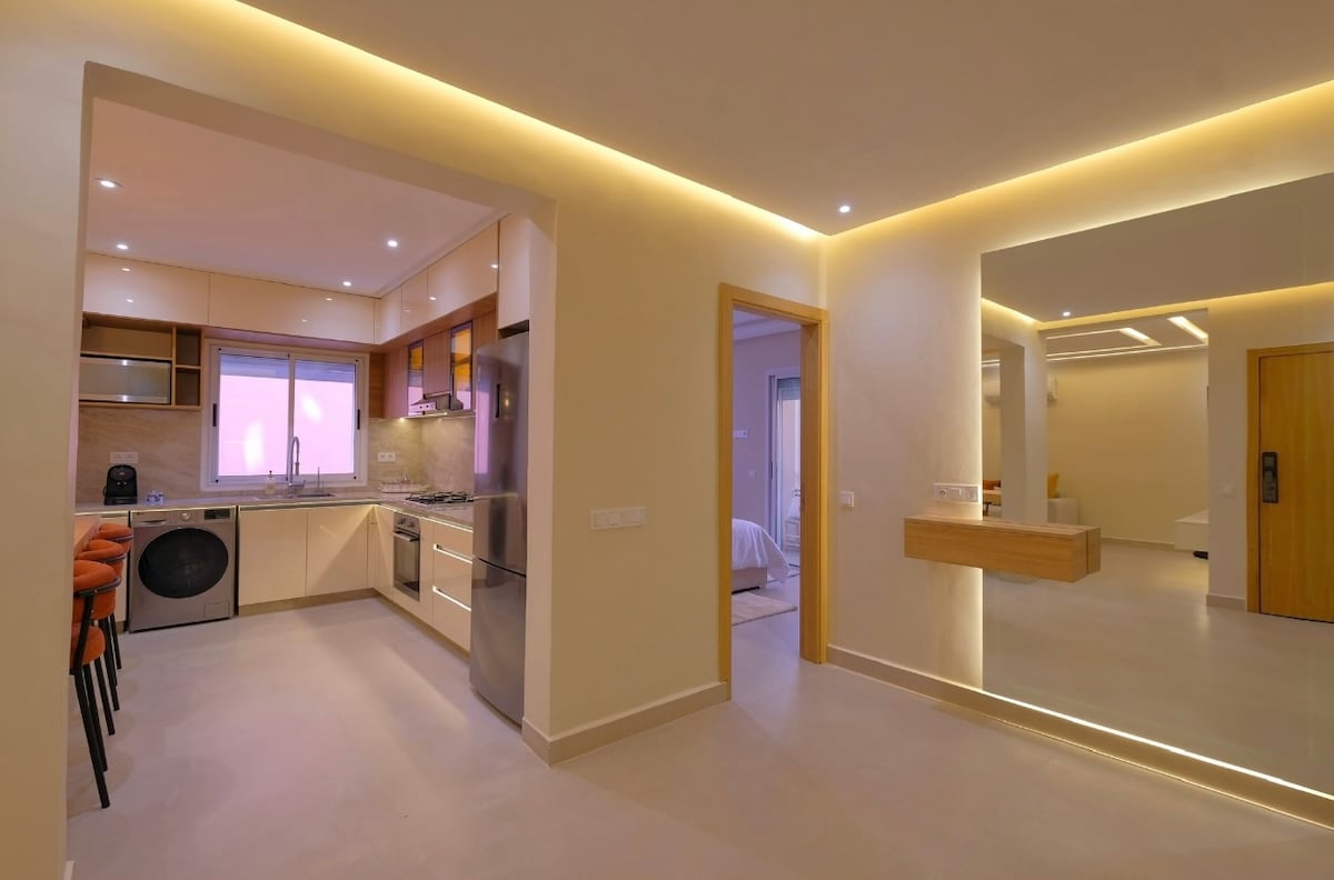 Welcome to our brand new luxurious city centre apartment! At gueliz. Enjoy modern comfort with high-speed WiFi, Netflix, a fully equipped kitchen, and a cosy bedroom. Just steps away from top attractions, dining, shopping, and entertainment, our apartment is your perfect home base. Experience convenience and style with air conditioning, heating, laundry facilities, and a secure smart lock system. Ideal for both business and leisure travellers. Book now for an unforgettable stay