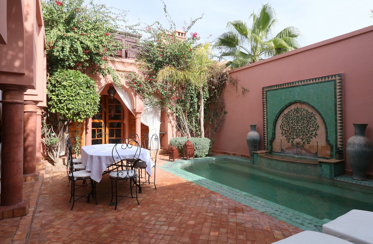 Notre Riad se situe dans la médina de Marrakech avec ses 5 chambres avec douche et wc rien que pour vous Vous serez seul dans le riad Pour un séjour inoubliable entre vous Vous l apprécierez pour sa sécurité et surtout surtout pour youcef qui est d une gentillesse et une disponibilité exceptionnelle depuis 15 ans ils rend votre séjour magnifique regarder les avis des clients 100% satisfaits parfait pour les couples, les voyageurs d'affaire et surtout les familles avec enfants merci 🙏