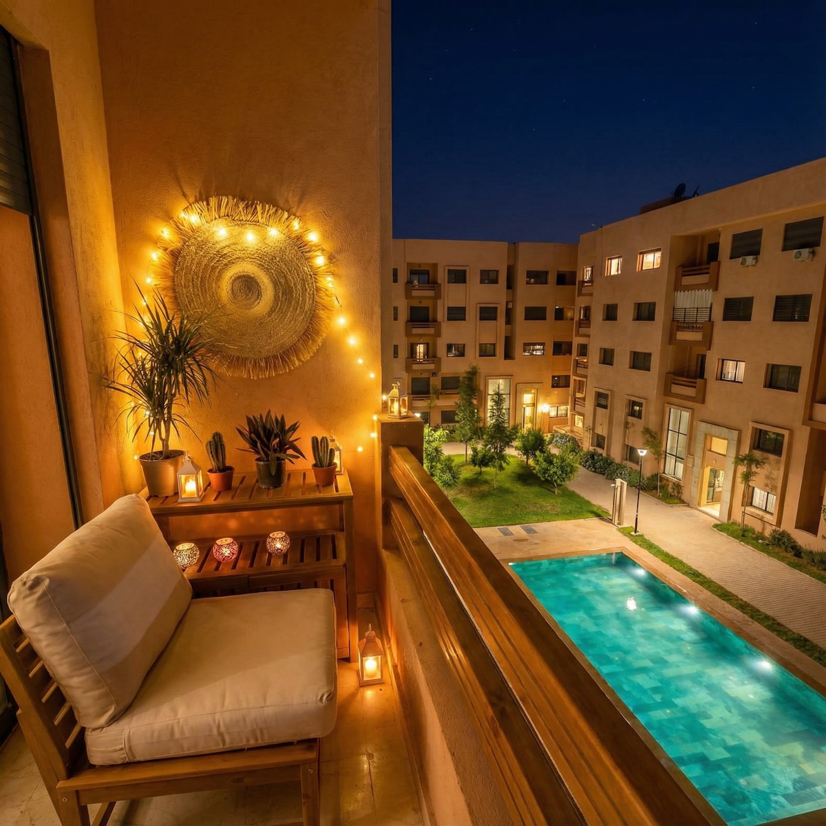 Expérience immersive dans un appartement-galerie contemporaine. Parfaitement situé dans le Triangle d’Or festif, 15 min à pied de la médina. Cet appartement très haut de gamme de 140m2 lumineux et cosy. À deux pas des palaces emblématiques (Mamounia, Sofitel, Casino) Résidence de prestige avec piscine. Idéal jusqu'a 5 voyageurs, il offre 2 chambres, 3 terrasses, 2 salles de bain et 3 WC. Entre ambiance branchée et animée, une expérience unique au cœur de Marrakech vous attend.