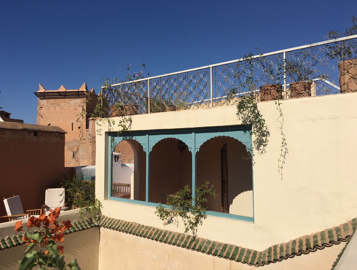 ❤ ☆UNBEATABLE☆ LOCATION The Riad is located in the heart of the Medina, surrounded by the fabulous Souks, in a safe and welcoming neighborhood. The legendary Jamaâ-El-Fna Square is only 300 meters away. ❤ ENTIRE PLACE TO YOURSELF • 3 Bedrooms with A/C • 2 Bathrooms • Rooftop Lounge • Bright Patio • Equipped Kitchen ❤ HOUSE STAFF ON-CALL Myriem, the housekeeper, can prepare your breakfasts and personalized meals on request (additional charge). ❤ FREE CANCELLATION ❤ HI-SPEED WIFI