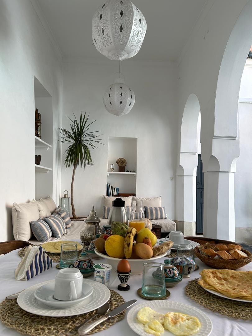 Our light and airy Riad is the perfect place to chill out after a day in the Souks. Sunbathe by our very rare, all-season heated rooftop pool and enjoy a nice cold drink on our lovely terrace — the perfect place to relax in the beautiful Marrakech heat. You will enjoy the entire Riad exclusively, with prices based on 1 to 4 guests, and an additional charge (applied at booking) for extra guests (maximum 8 people). All stays include a traditional Moroccan breakfast for all guests each morning.