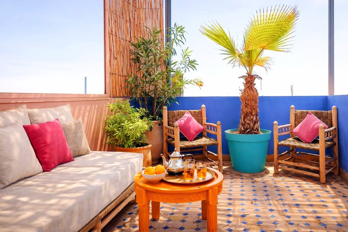 位于Guéliz的别致波西米亚风格的天堂,带阳光露台