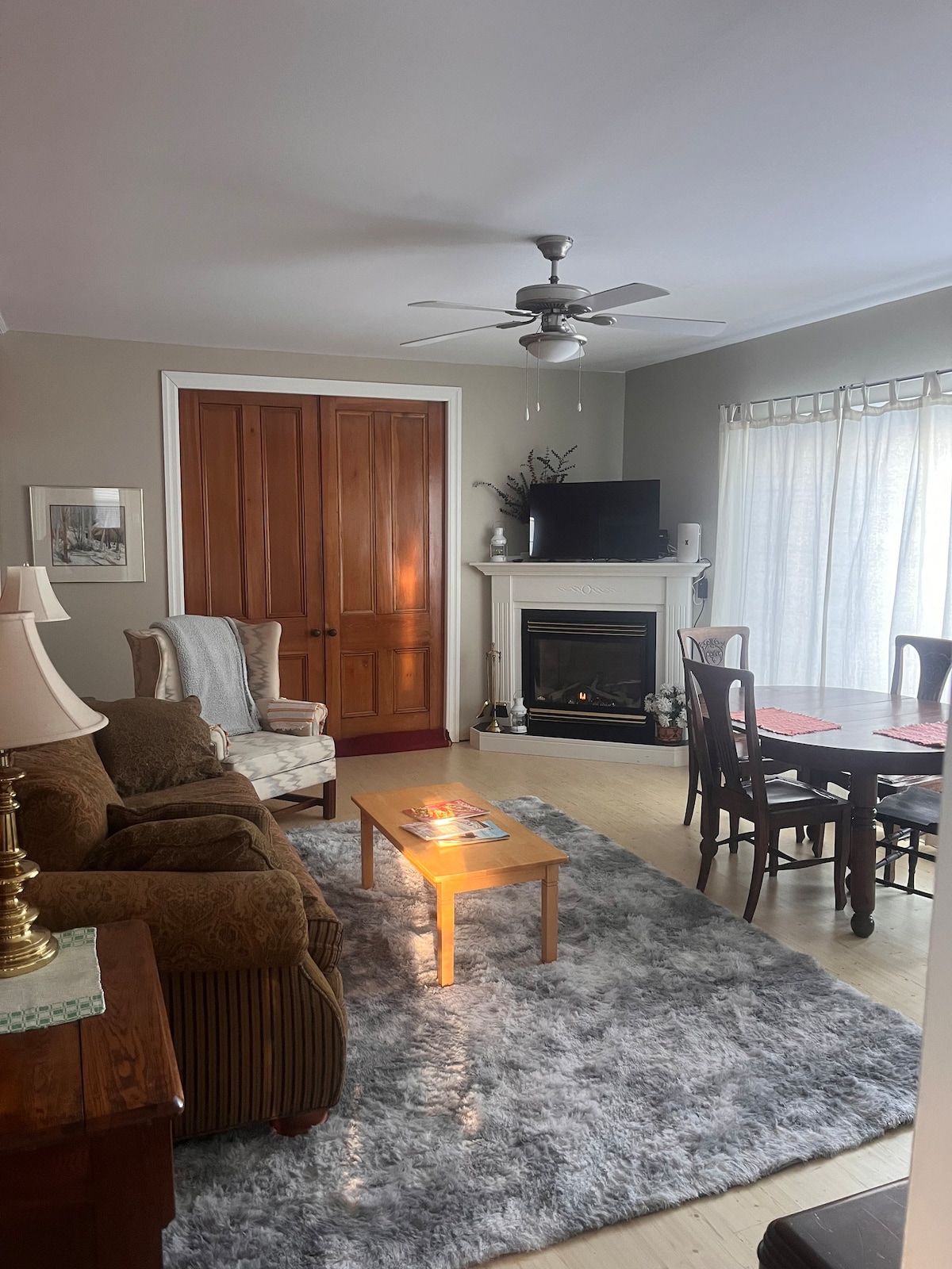 Riverside home with Modern secured private suite and entrance, perfect place to stay for work or leisure. Prepare your morning coffee and breakfast overlooking the beautiful Miramichi River and enjoy your evening beverage on club chairs in relaxing lounge area, watching fiber TV package on 50" flat screen. Retire into the spacious bedroom, turn down the fresh linens, take this time to check in with your social media friends and family with free WiFi before you doze off for a good night sleep.