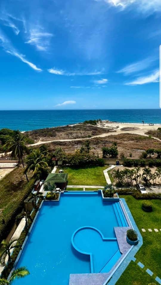 Regálale a tu familia una escapada inolvidable en este mágico lugar frente al mar.Disfruten juntos de los más bellos amaneceres y atardeceres, piscina de 3.000m², jacuzzis,parrilleras, gimnasio,canchas de tenis,salón de juegos, áreas verdes.El apto cuenta con 3 cómodas habitaciones (cama king y matrimoniales), todas con TV y aire acondicionado, 2 b, cocina equipada, sala con sofá y TV, amplia terraza con vista directa al mar.¡Diversión, descanso y recuerdos para toda la familia! Estacionamiento