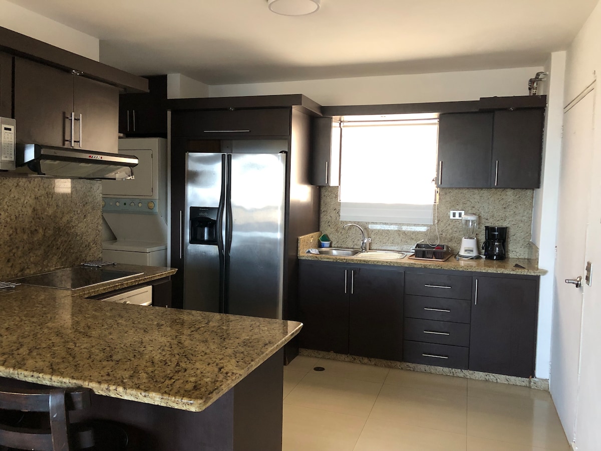Apartamento recién remodelado y frente a la playa (¡primera línea!). Este apartamento es espacioso en todo sentido: cuartos y baños grandes, sala de estar y tres áreas para comer. Tanto las habitaciones como la sala tienen vista a través de ventanas grandes desde donde se observa una hermosa vista de la costa y se puede ver toda la playa. El apartamento tiene acceso a 3 playas. Bien equipado con todos los esenciales para tu estadía, incluyendo artículos de cocina, lencería y entretenimiento.