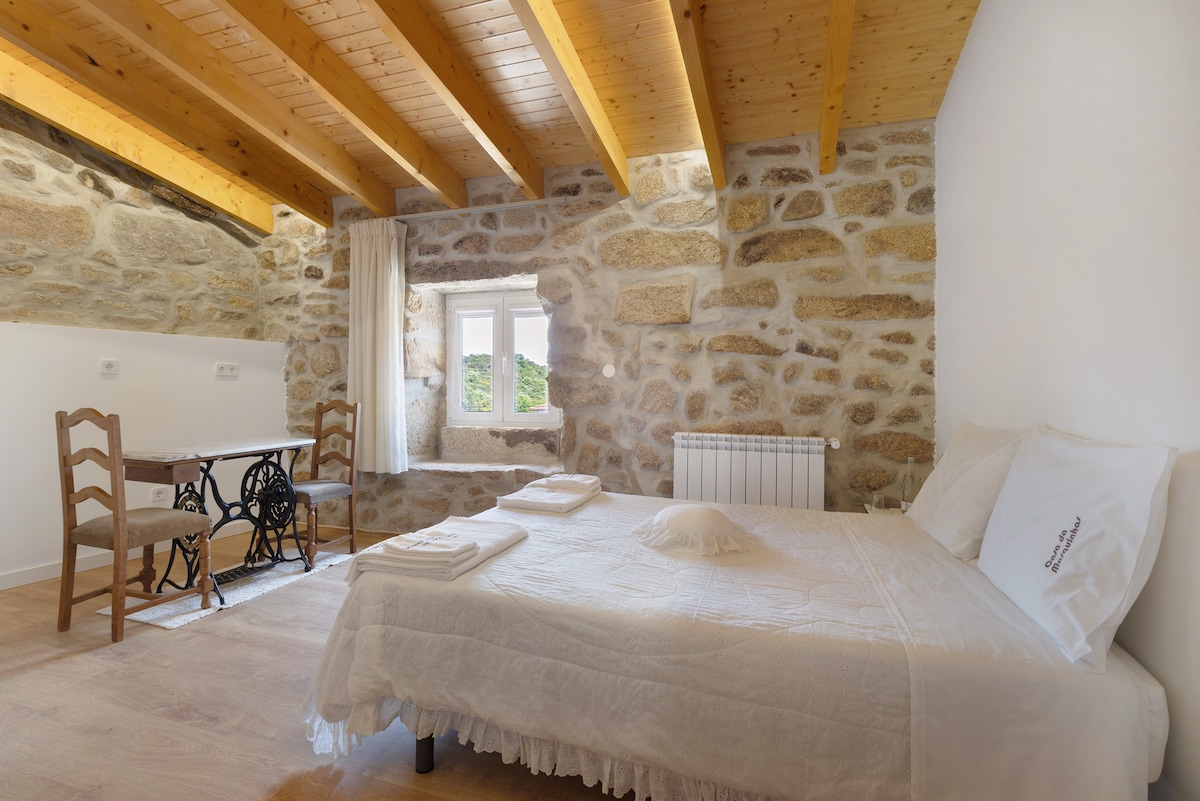 Descubra o charme rústico e acolhedor deste quarto elegante, perfeito para relaxar . Com paredes de pedra tradicionais e uma decoração sofisticada, este espaço combina o conforto moderno com o encanto do campo. A cama espaçosa e confortável garante uma noite de descanso tranquila, enquanto a luz natural e os detalhes cuidadosamente escolhidos criam um ambiente sereno. Equipado com ar condicionado, televisão, este quarto é ideal para casais ou viajantes à procura de tranquilidade e autenticidade.